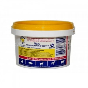 Мазь тетрациклиновая глазная 1% для наружного применения для лечения инфекционных заболеваний глаз у животных. По внешнему виду лекарственный препарат представляет собой однородную мазь от желтоватого до желтовато-бурого цвета.