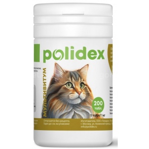 POLIDEX Multivitum (Полидекс Мультивитум) для взрослых кошек (комплекс, содержащий витамины, макро- и микроэлементы). При клинических испытаниях Multivitum (Полидекс Мультивитум) для взрослых кошек дополнительно отметили, что данный препарат также способствует нормализации обменных процессов в послеродовый период.