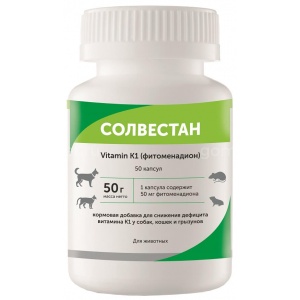 СОЛВЕСТАН в профилактических целях применяют один раз в день в течение 21 дня в дозе 5 мг фитоменадиона на 1 кг массы животного или содержимое 1 капсулы (50 мг по фитоменадиону) на 10 кг. с кормом или лакомством. Профилактику рекомендовано проводить минимум 2 раза в год, при отсутствии провоцирующих условий по дефициту витамина К.