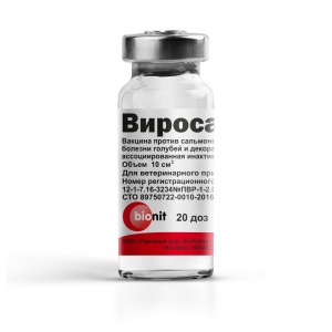 Вакцина для голубей и декоративных птиц «Виросальм» представляет собой жидкость для инъекций желтовато-серого цвета.